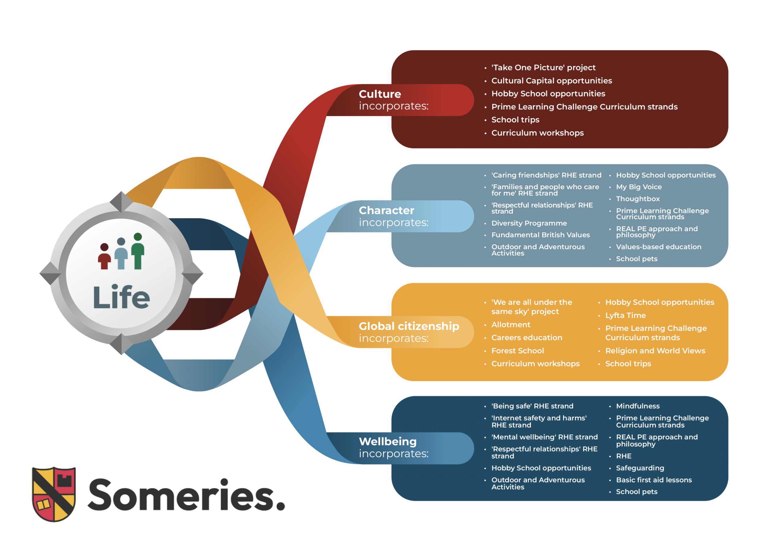 Our Life Curriculum has four strands which are focused on developing pupils as balanced and well-rounded citizens who are ready for life in modern Britain:
